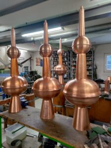 Metaltrykkeriet i Rødme producerer spir til alle slags bygninger, og herunder ser du nogle af de spir, som vi har produceret. Spir sætter prikken over i’et på det lille lysthus, tårnet på herregården eller på kvisten på taget. Alle de viste modeller kan laves i zink, kobber eller messing.